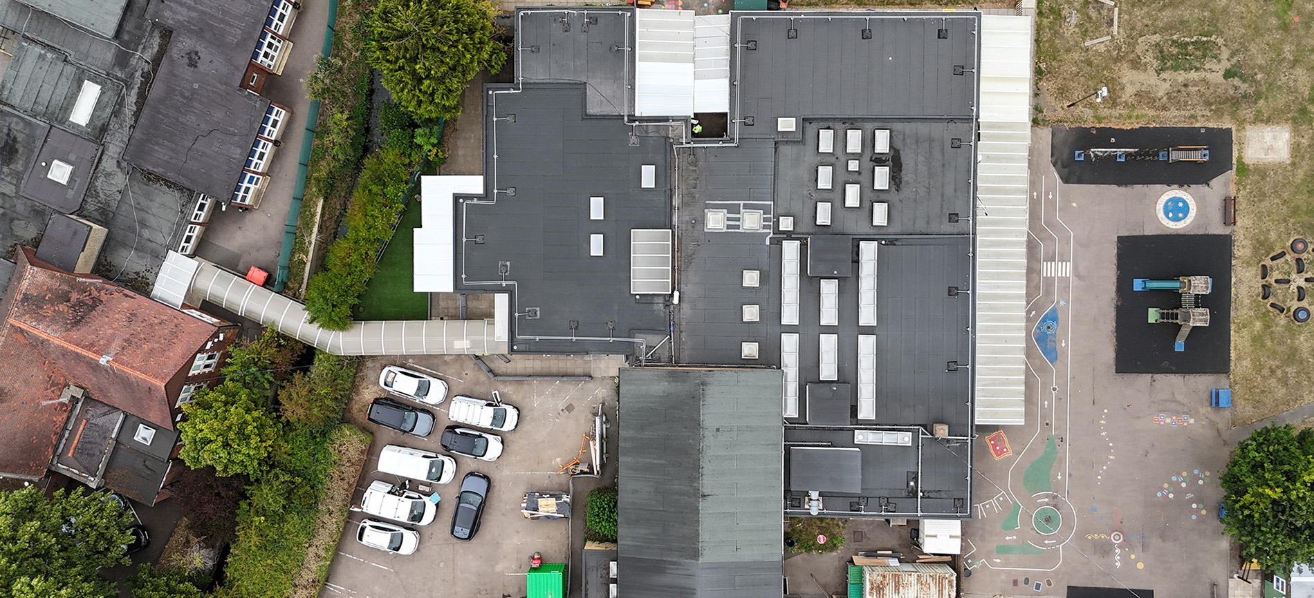 Flat and pitched roof replacement delivering safe, dry, ESFA‑compliant classrooms.